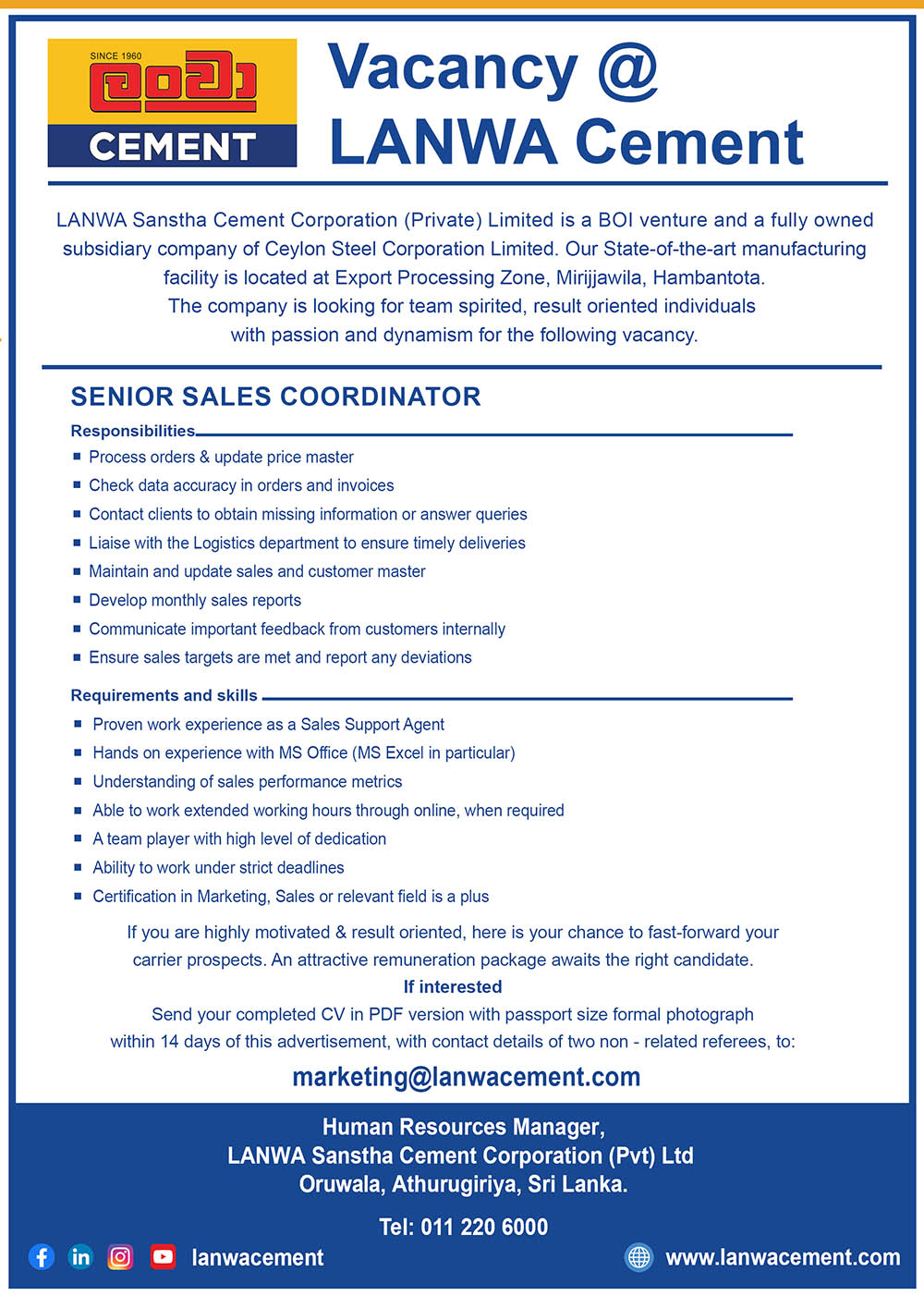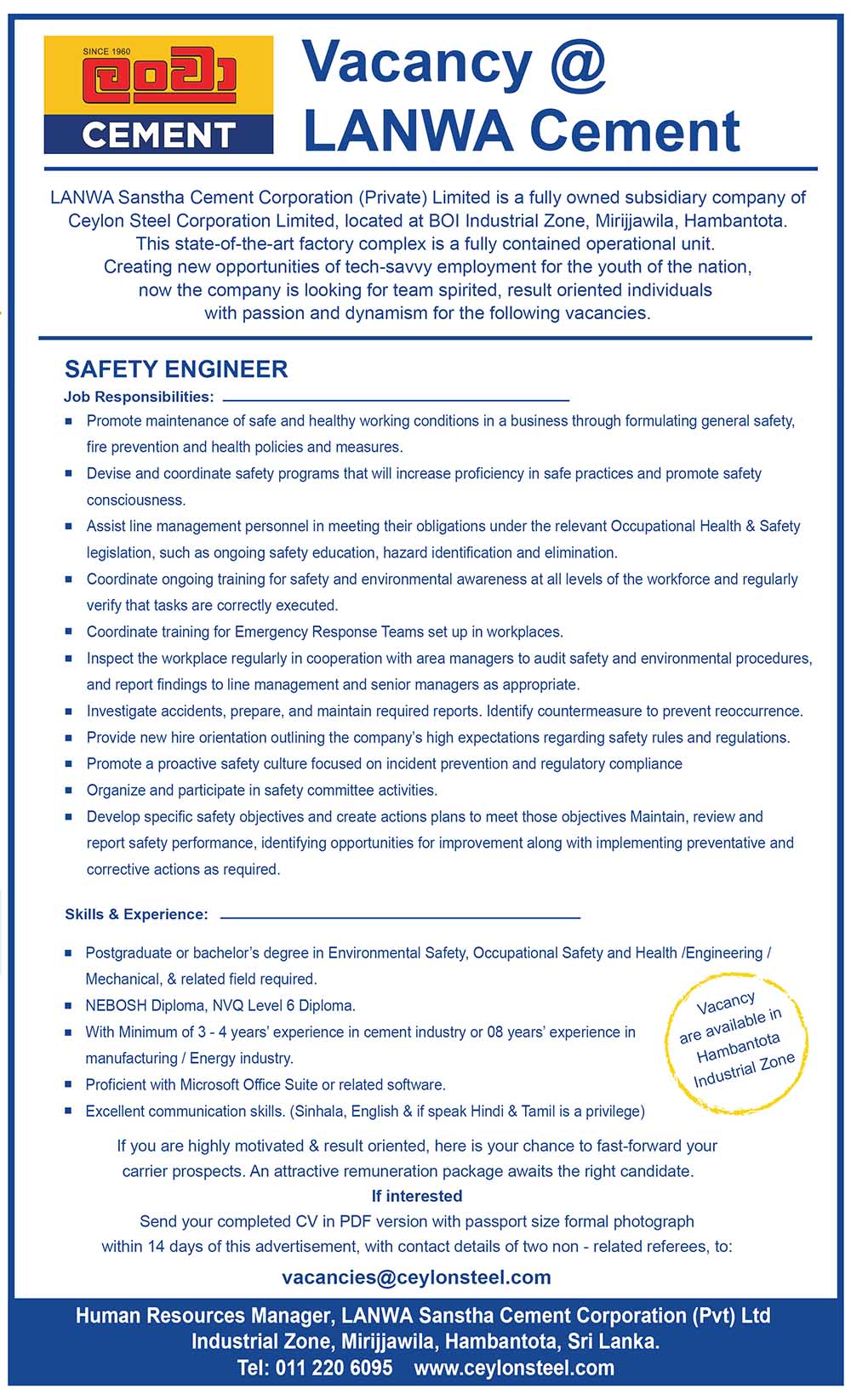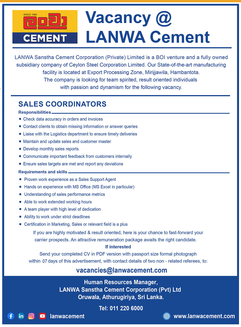 How you can contribute to LANWA Sanstha Cement Corporation (Pvt) Ltd.